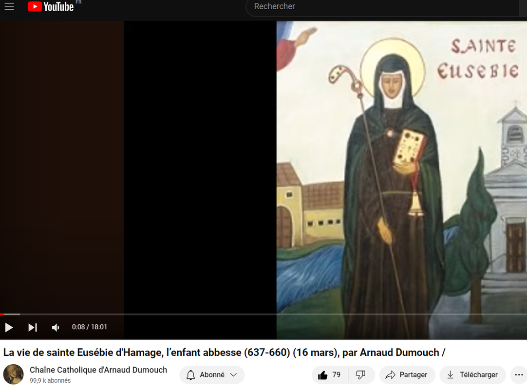 L’ayant un peu sensibilisé à notre cause, il vient de sortir cette vidéo sur une histoire peu connue : Sainte Eusébie d’Hamage, élue mère abesse à 12 ans (VIIe siècle).