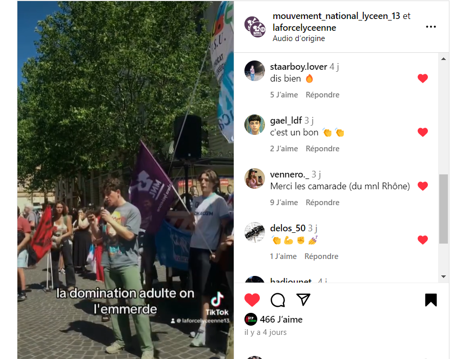 Il faut toucher les organisations de jeunesse, c’est la seule solution.J’ai tenté depuis longtemps de les contacter mais la plupart ne sont joignables que sur Twitter ou Instagram, c’est le bordel. Le MNL est sensibilisé, très clairement (capture d’image de leur dernière manif), mais aucun projet écrit n’est sorti : https://www.instagram.com/reel/C7jeoNDC5Wk/