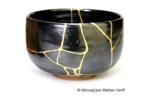Et puis (après 2ème réflexion :-)…), c’est quand même un pot tellement bien recollé que j’ai eu un doute, donc je suis allée voir ce que signifiait « kintsugi » et j’apprends (ben mon compagnon a vu ça à la télé ! donc c’est à la mode aussi !) que c’est l’art japonais de la réparation des céramiques avec… de l’or ! (du moins à l’origine, d’ailleurs c’est d’autant plus éloquent : à chacun selon ses moyens et non selon ses besoins…) Donc c’est au contraire, là aussi, un symbole de l’efficacité et de la « beauté » de la résilience (on est chez les esthètes de la douleur), tout à fait dans l’esprit de Cyrulnik, il y a plein d’articles sur Internet (si vous le saviez déjà , moi pas), cf. par ex. https://autrement2main.com/kintsugi-rendre-plus-belles-nos-blessures/ : « l’art de rendre plus belles nos blessures »… « Pourquoi vouloir cacher nos blessures ? » (sous-titre) : jusque-là tout va bien, comme dirait von Braunmühl, mais aussitôt après ça se gâte – lisez sur la page parce qu’on ne peut pas faire de copié-collé, donc je cite juste des petits bouts, cf. la fin du § « Une philosophie de vie » :